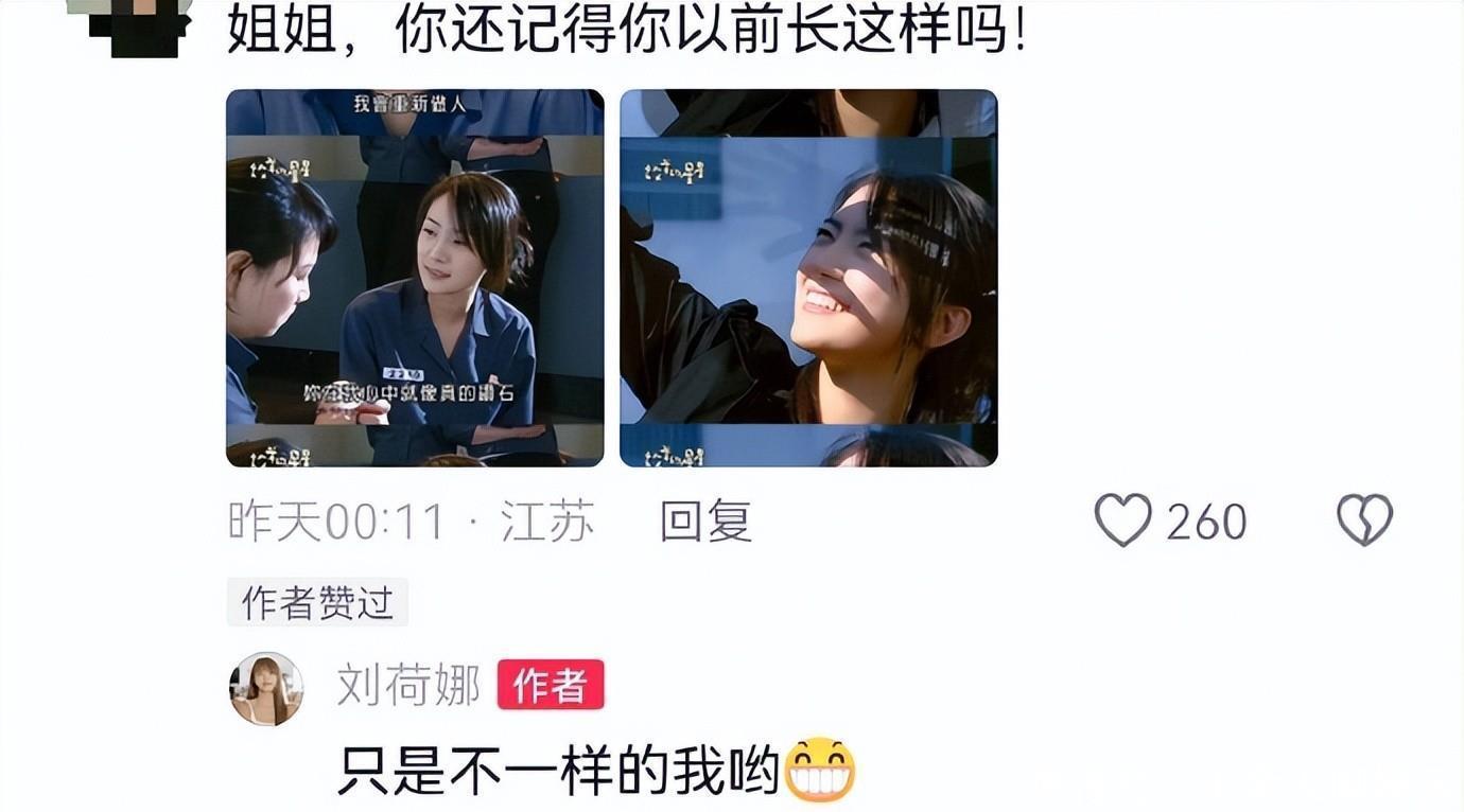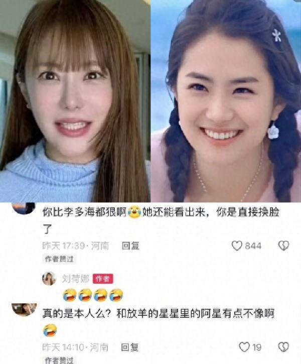 比如,早年的刘荷娜面型圆润,双眼灵动,反观如今则是尖下巴以及立体的五官。而面对网友的换脸质疑,刘荷娜也耐心一一回复:“只是不一样的我哟”、“女大十八变嘛”、“现在是你的阿星2.0版本”、 “我没有变,只是我的不同面”,等等之类的。