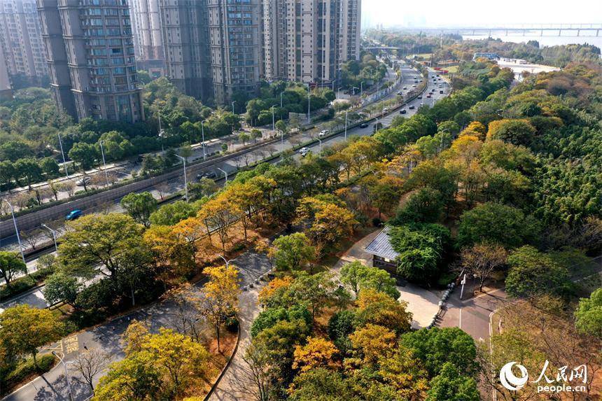 赣江江滩公园沿线树木披上“彩衣”,迎来了最佳的观赏期。人民网记者 时雨摄人民网南昌11月12日电 (记者时雨)时值深秋,南昌赣江两岸披上了季节限定版的“彩衣”,迎来了最佳的观赏期。晴好天气下,更使得这幅画卷格外动人。