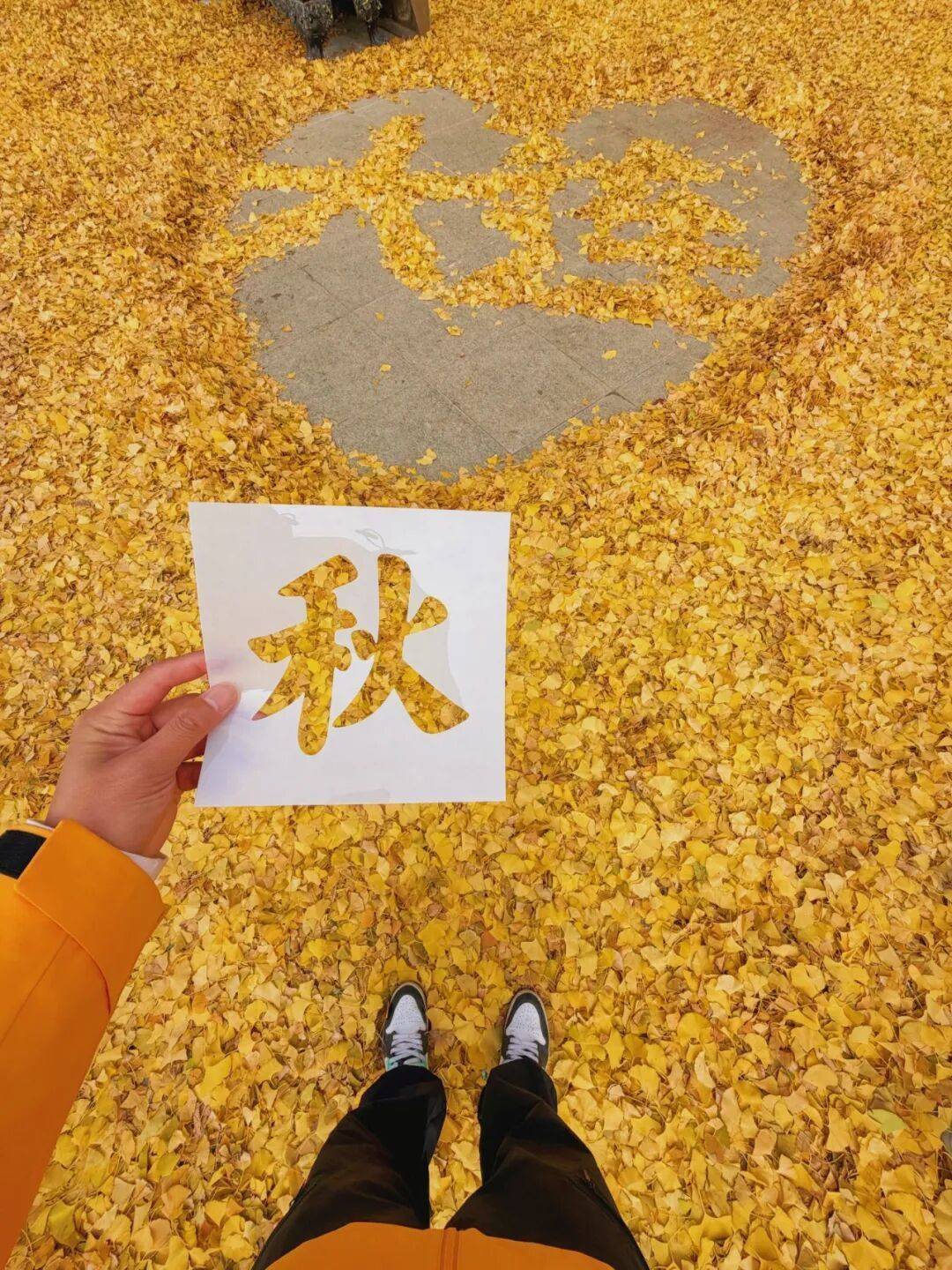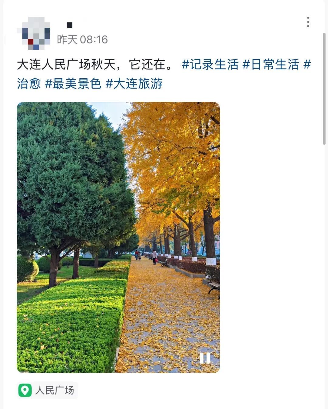 人民广场的四周,其实栽了很多银杏和柏树,人行路外围是银杏树,内圈是柏树。每当这个时节,银杏变黄,柏树依然是绿色,漫步其中,即是平分秋色。