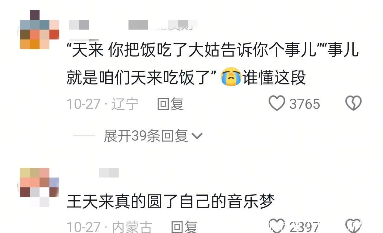 《乡村爱情》的观众也很催泪:王天来真的圆了自己的音乐梦,天来想大姑了。