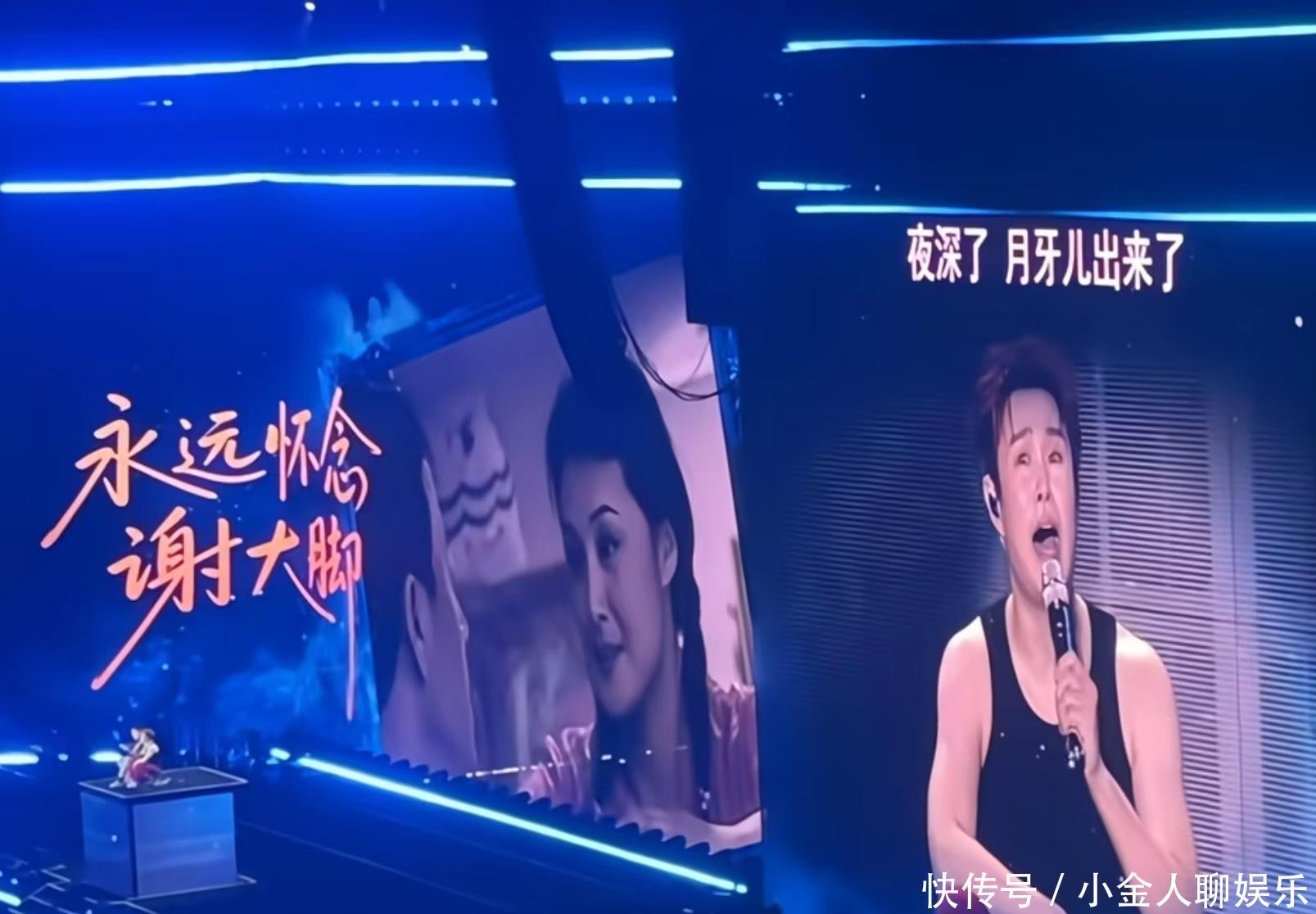 小沈阳越来越知道自己要什么,也不再隐藏思念,近日演唱会上,他刚开口唱《月牙儿》,大屏幕上就出现了于月仙的照片,“永远怀念谢大脚”七个字一出来,现场无数歌迷泪崩。