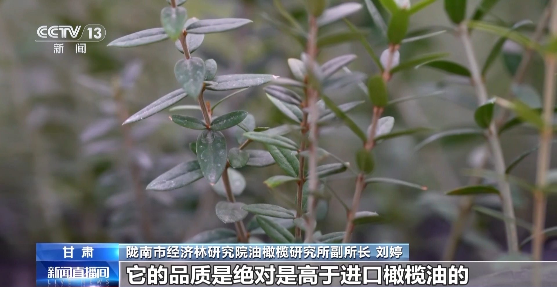 陇南市武都区两水镇两水村农户 庞云霞:以前我们这边的山都是光秃秃的,这个橄榄树比较耐旱,可以绿化。我们现在线下线上都在卖,销售的渠道也更多了,通过橄榄树来致富,让日子过得更加红火。